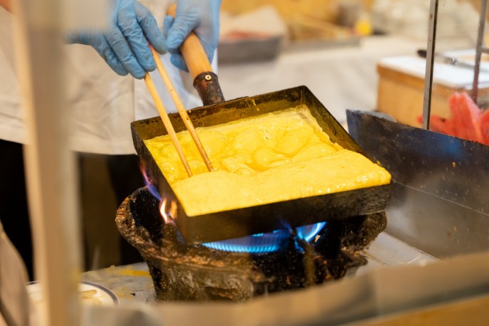 板前が目の前で焼き上げるふんわり玉子焼きや、フルーツ王国・山梨ならではの美しいフルーツカッティング。