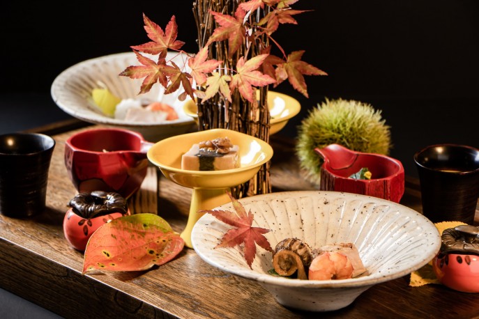 秋の会席料理とともに、今年のフレッシュなヌーボーワインをご堪能ください。