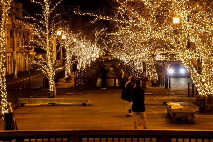 駅前通りもライトアップされ、温泉街全体が光に包まれます。