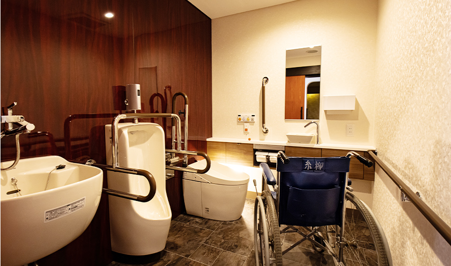 お風呂用車椅子も用意していますので、ご年配の方、お体の不自由な方にもゆっくり温泉を楽しんで頂けます。