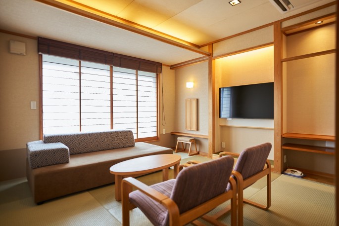 チェックイン後は、ソファーにてごゆっくりお過ごしいただき、 ご夕食中にスタッフがソファーベッドへのセッティングを行います。